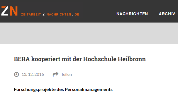 Am Campus Schwäbisch Hall realisierten Studierende des Studiengangs Management und Personalwesen im Rahmen internationaler Forschungsaktivitäten des Studiengangsleiters Prof. Dr. Heiko Hansjosten gemeinsam mit dem European Institute für Knowledge- and Value-Management (EIKV) aktuell zwei spannende Human Resources Projekte, bei denen der HR-Dienstleister BERA zur Evaluation beiträgt. Zum einen die Profilanalysemethode TalentView, welche von Prof. Hansjosten und dem Lehrbeauftragten Farid Thomas Arbabi entwickelt wurde sowie eine Unternehmenskulturmessung.